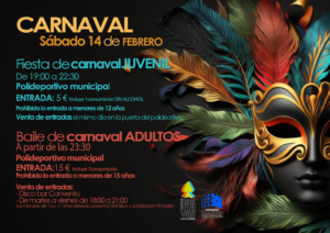 El próximo 14 de febrero, a partir de las 23:30 h, el polideportivo municipal de Las Navas del Marqués se llenará de música, color y diversión con el Baile de Carnaval.