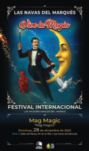 Este espectáculo forma parte de Las Navas del Marqués Vive la Magia, en el marco del Festival Internacional Vive la Magia y continúa la mañana siguiente con el taller «Vive la magia», para niños de 7 a 12 años. Inscríbete y conoce todos los detalles aquí.