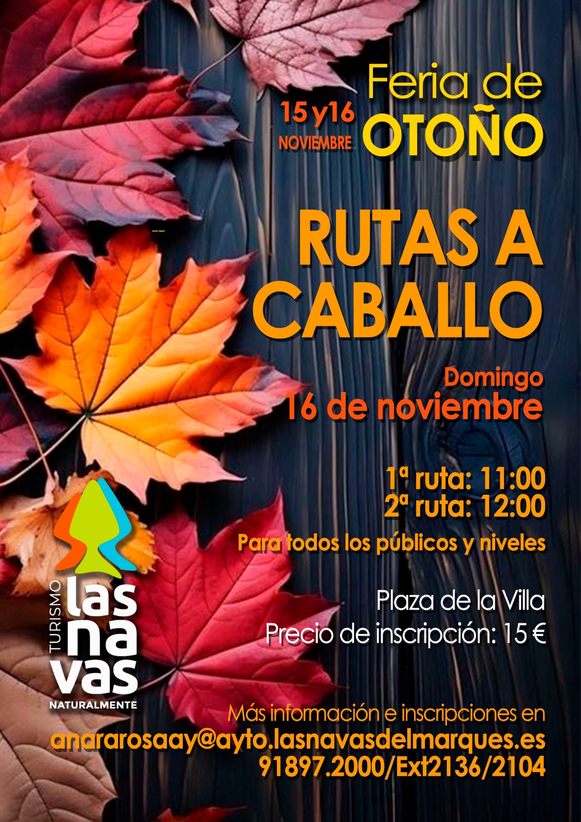 El domingo 16 de noviembre, dentro de la Feria de Otoño de Las Navas del Marqués, disfruta de una experiencia única con las rutas a caballo pensadas para todos los niveles a cargo del Centro Hípico Los Llanos.