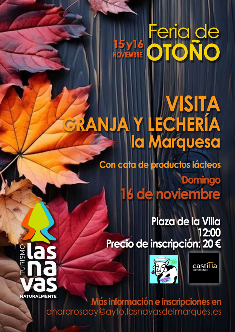 El sábado 16 de noviembre, dentro de la Feria de Otoño, disfruta de una visita guiada a la granja y lechería La Marquesa de Las Navas, todo un referente en Las Navas del Marqués, a cargo de Castilla Experience.